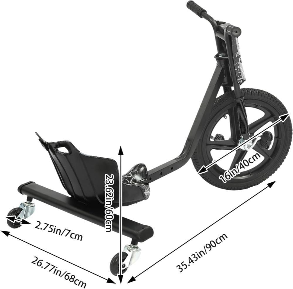 يتميز السكوتر بهيكل متين مصنوع من الحديد المقوى، مع عجلات خلفية دوّارة توفر حرية الانعطاف 360 درجة لتجربة دريفت حقيقية. يأتي مع مقعد مريح قابل للتعديل حسب الطول، ومقود يتحكم فيه الطفل بكل سهولة، ليضمن تفاعلًا أكبر أثناء اللعب.